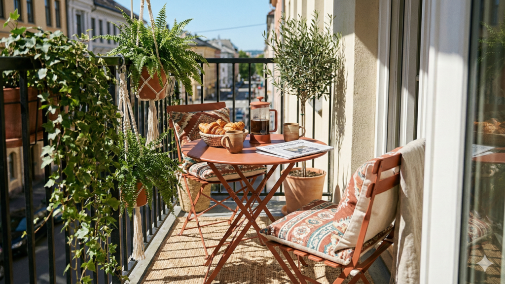 Antes de comprar, é essencial medir a largura e a profundidade da sacada para não bloquear portas ou janelas. Em varandas estreitas, mesas de cerca de 60 cm ou modelos quadrados pequenos, combinados com cadeiras empilháveis ou dobráveis, costumam funcionar melhor e garantem boa circulação.