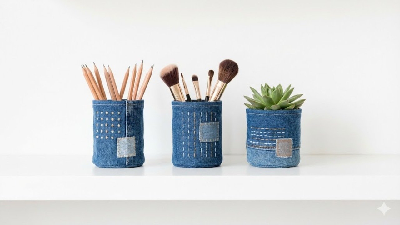 A costura em casa deixou de ser só passatempo e virou uma forma criativa e econômica de reaproveitar roupas, especialmente jeans antigos esquecidos no armário, que podem se transformar em peças úteis como um porta-lápis estiloso para sua mesa de estudo ou trabalho.