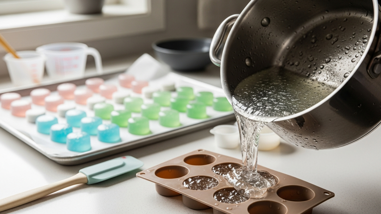 O preparo da pastilha sanitária em gel caseira segue uma sequência simples, que pode ser encaixada na rotina doméstica. O processo envolve transformar o sabonete em raspas, misturar ao desinfetante, aquecer até formar um gel homogêneo e, por fim, moldar em uma forma adequada.