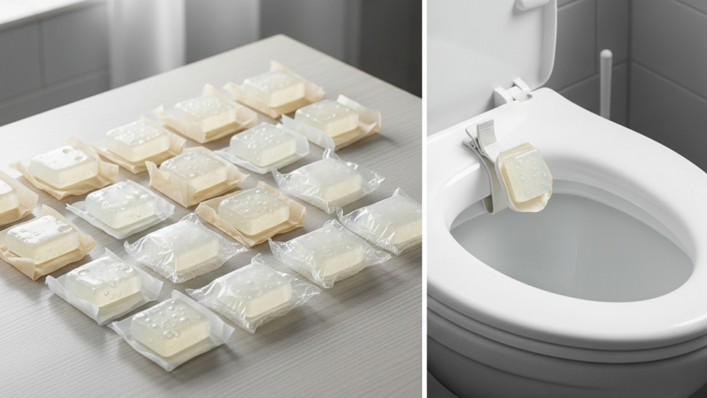 As pastilhas sanitárias em gel caseiras são pequenos blocos de material gelatinizado formulados para ficar em contato com a água do vaso a cada descarga. Sua função é liberar fragrância, contribuir para a limpeza suave do local, reduzir odores e manter a sensação de higiene por mais tempo.