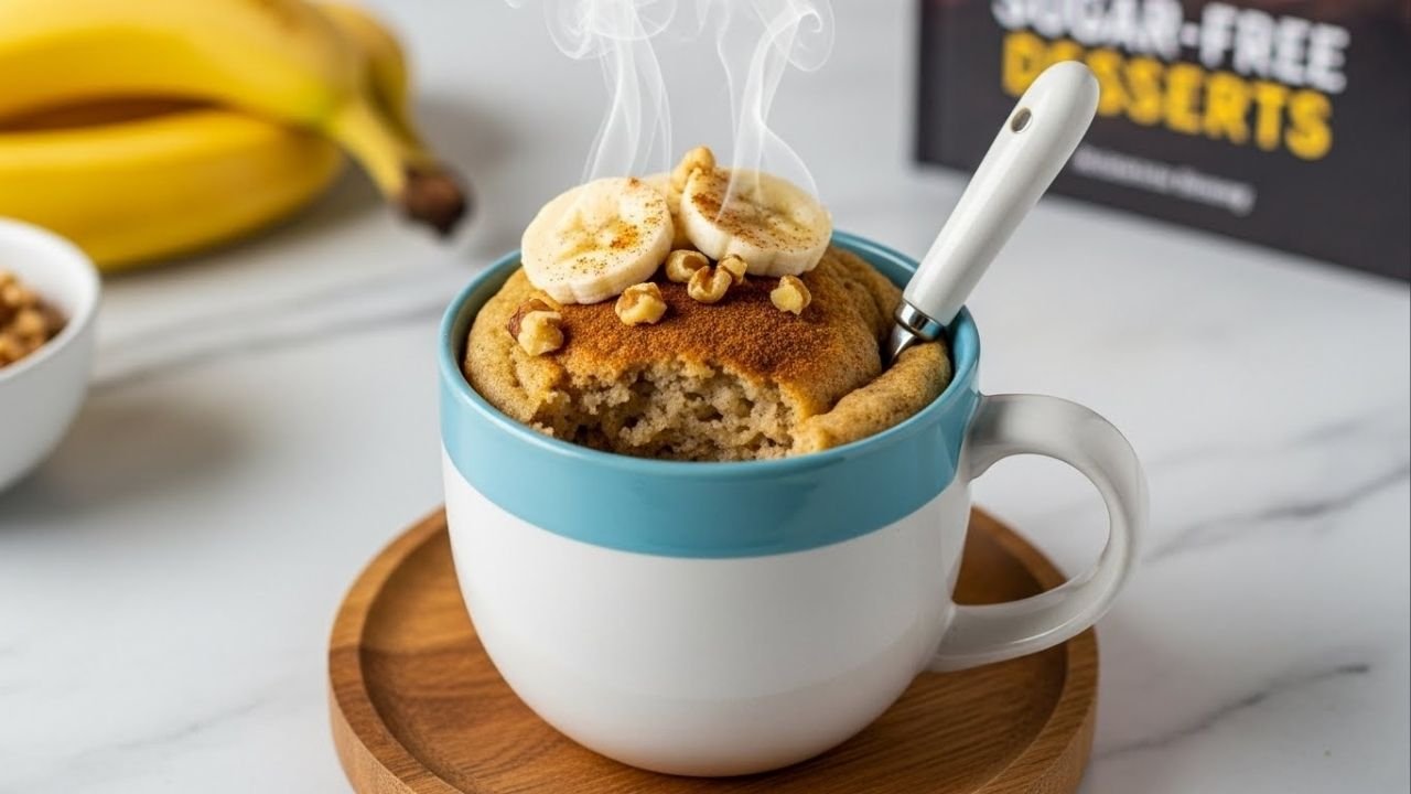 Bolo de caneca com banana madura e aveia fica doce sem açúcar, leva poucos ingredientes e fica pronto em até 3 minutos no micro-ondas, usando apenas banana, aveia, ovo e fermento para um doce rápido, saudável e úmido.