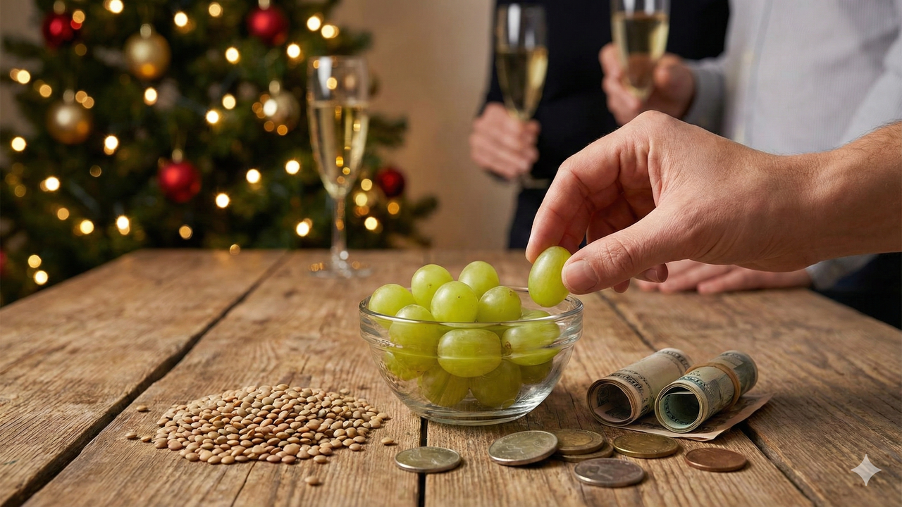 A volta com a mala vazia, logo após o brinde, simboliza abertura para viagens, parcerias comerciais e oportunidades de trabalho em novos lugares. Já as lentilhas da abundância, servidas antes da meia-noite ou como primeira refeição de 1º de janeiro, remetem à multiplicação de recursos, como pequenas moedas que representam estabilidade e contratos duradouros.
