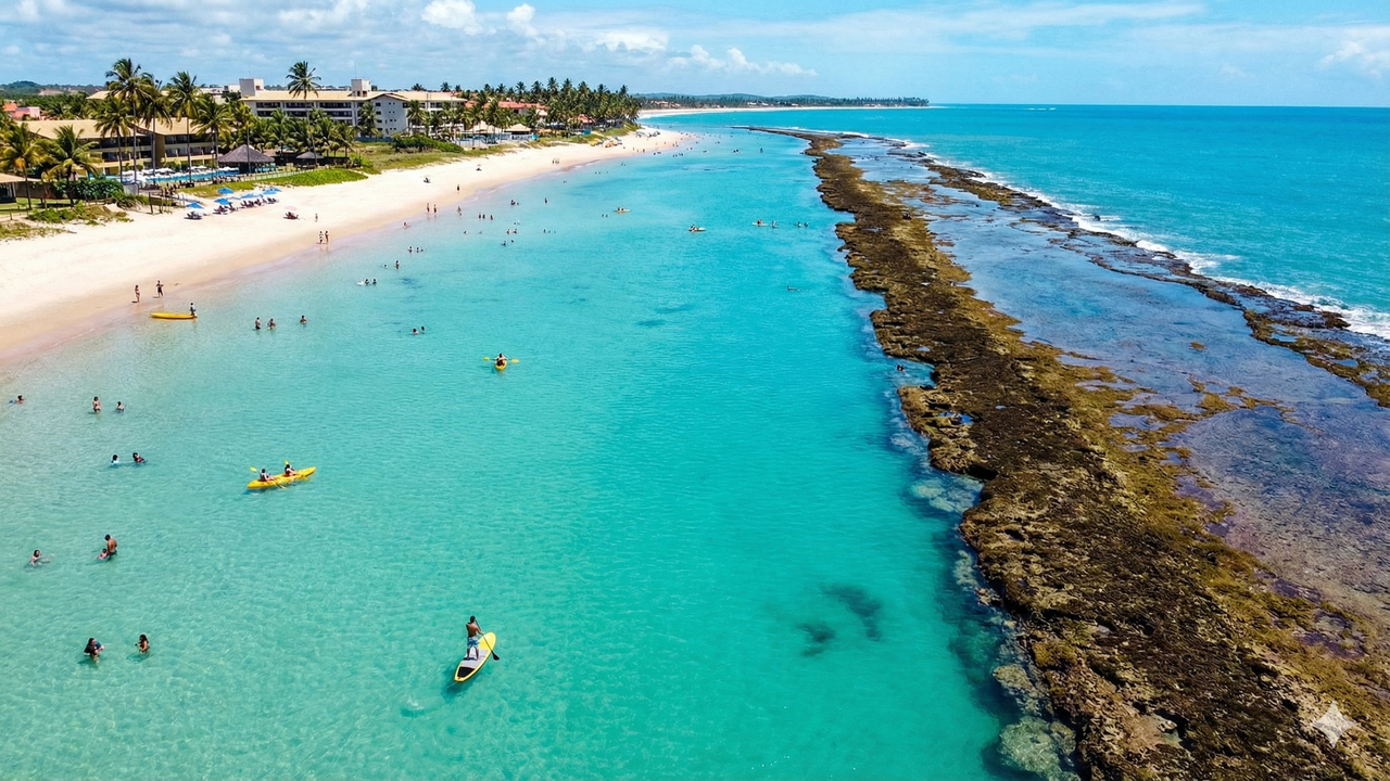 O mar calmo também favorece atividades como caiaque, stand up paddle e passeios curtos em pequenas embarcações, com aluguel de equipamentos em alguns pontos. Ao longo da orla, resorts oferecem acesso direto ao mar, enquanto trechos com entrada pública atraem quem prefere apenas estender a canga na areia e aproveitar o visual em um ritmo mais simples.