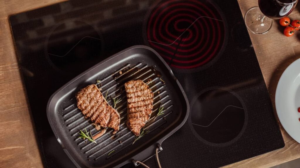 O fogão elétrico por indução funciona com um campo magnético que aquece diretamente o fundo da panela, sem chama visível, reduzindo a dispersão de calor para o ambiente e aumentando a eficiência. Em testes, pratos como feijão sob pressão, que exigem cerca de meia hora de cozimento, concentram a maior parte do gasto energético em qualquer tecnologia.