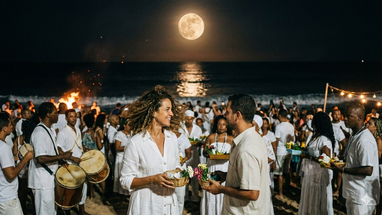 O primeiro encontro aconteceu em uma festa popular dedicada a Yemanjá, com tambores, oferendas e um mar de cenário de filme. Ela, argentina em busca de mudança; ele, baiano ligado ao mar e ao esporte. A química apareceu na água salgada, em um misto de português, espanhol e gestos, com cara de amor de verão, mas cheio de dúvidas sobre futuro e distância.