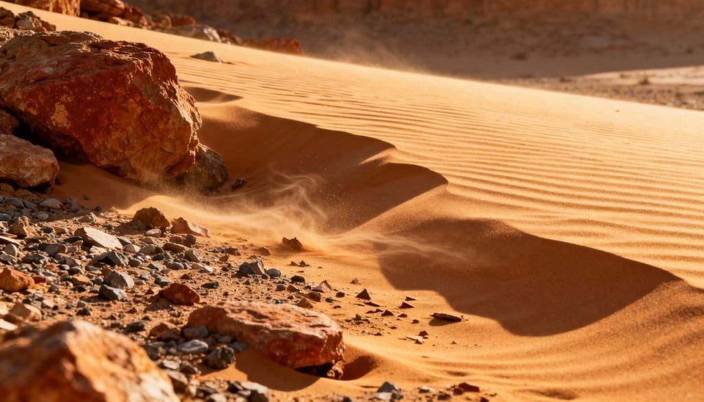 A imagem clássica de deserto é um mar de dunas, mas isso não significa ausência total de chuva. O que mais conta é a variação extrema de temperatura entre dia e noite, somada à ação constante do vento na superfície rochosa.