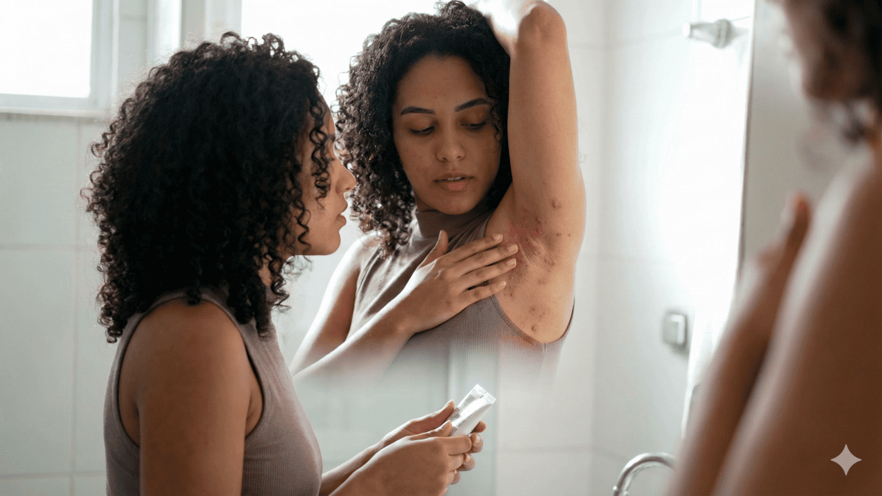 Em áreas como virilha, axilas e rosto, isso é ainda mais evidente. Suor acumulado, pouca ventilação e movimentos repetitivos formam o cenário perfeito para inflamação dos folículos e aparecimento de foliculite, aquelas bolinhas que lembram espinhas e podem causar dor e coceira.