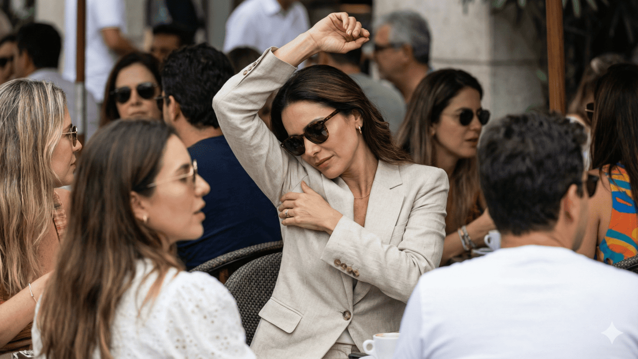 O suor em si quase não tem cheiro. O problema aparece quando ele fica parado na pele por muito tempo e entra em contato com micro-organismos que vivem naturalmente ali, liberando substâncias com odor forte, o famoso “cecê”. Regiões úmidas, quentes e abafadas, como axilas e pés, facilitam ainda mais esse processo. Fatores como estresse e ansiedade intensos também podem aumentar a produção de suor, o que favorece ainda mais o mau cheiro.