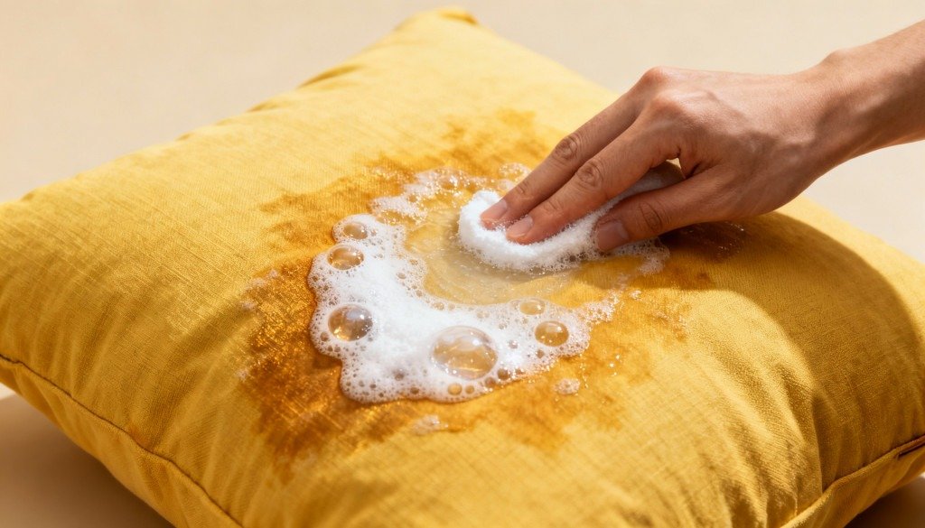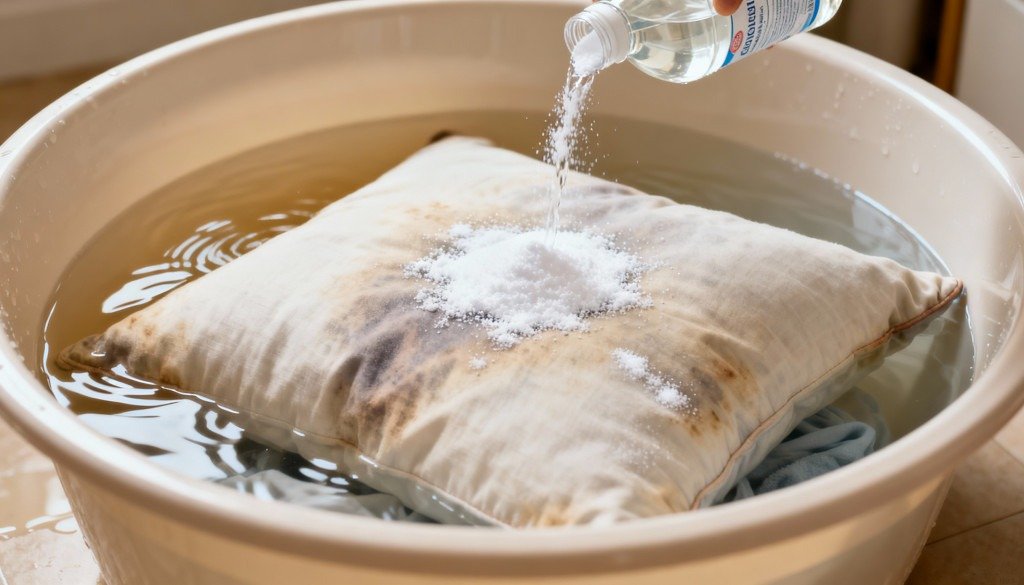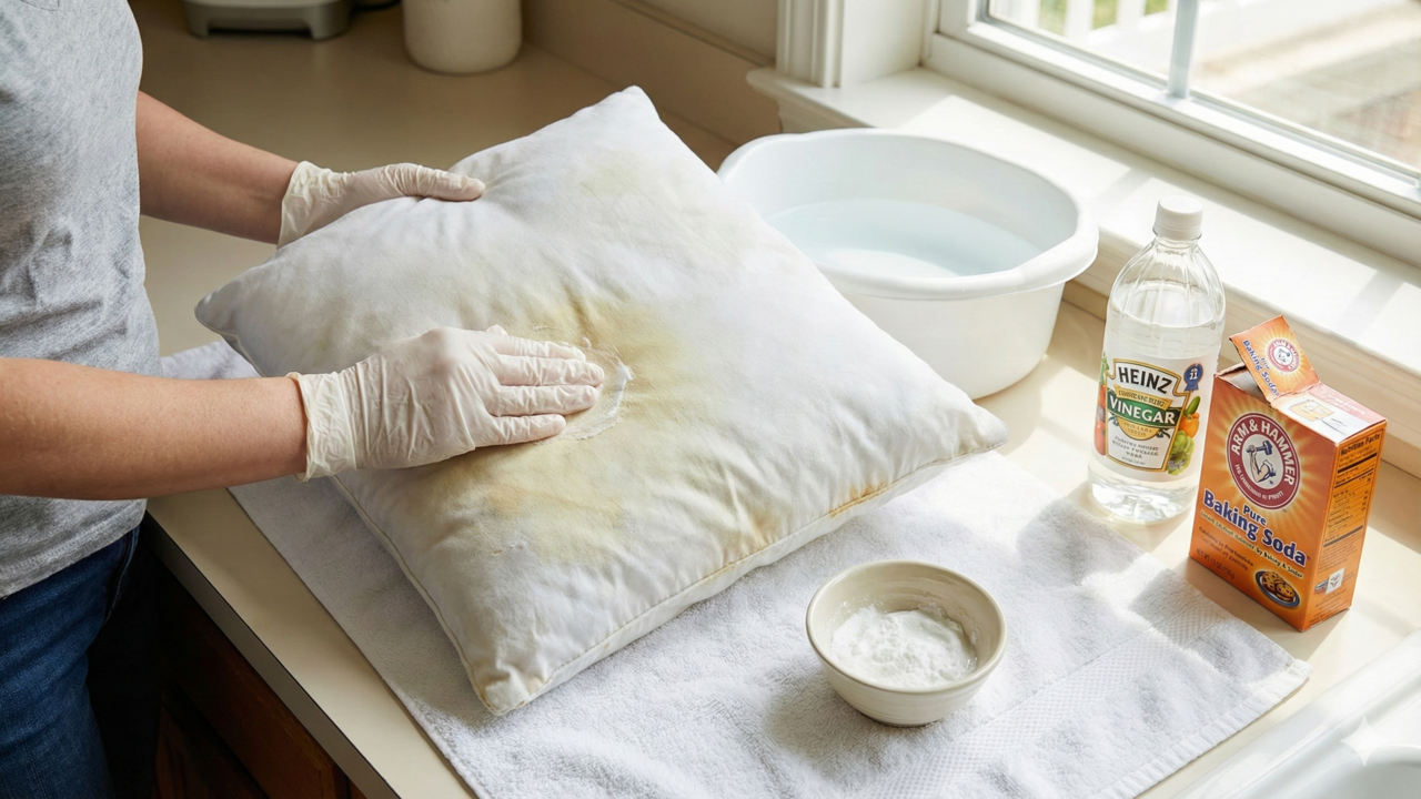 A palavra-chave deste tema é truque simples para tirar manchas amarelas do travesseiro, método que utiliza ingredientes comuns em casa e aplicado em poucos minutos. A combinação de bicarbonato de sódio e vinagre branco cria uma solução de limpeza que atua diretamente nas áreas amareladas.