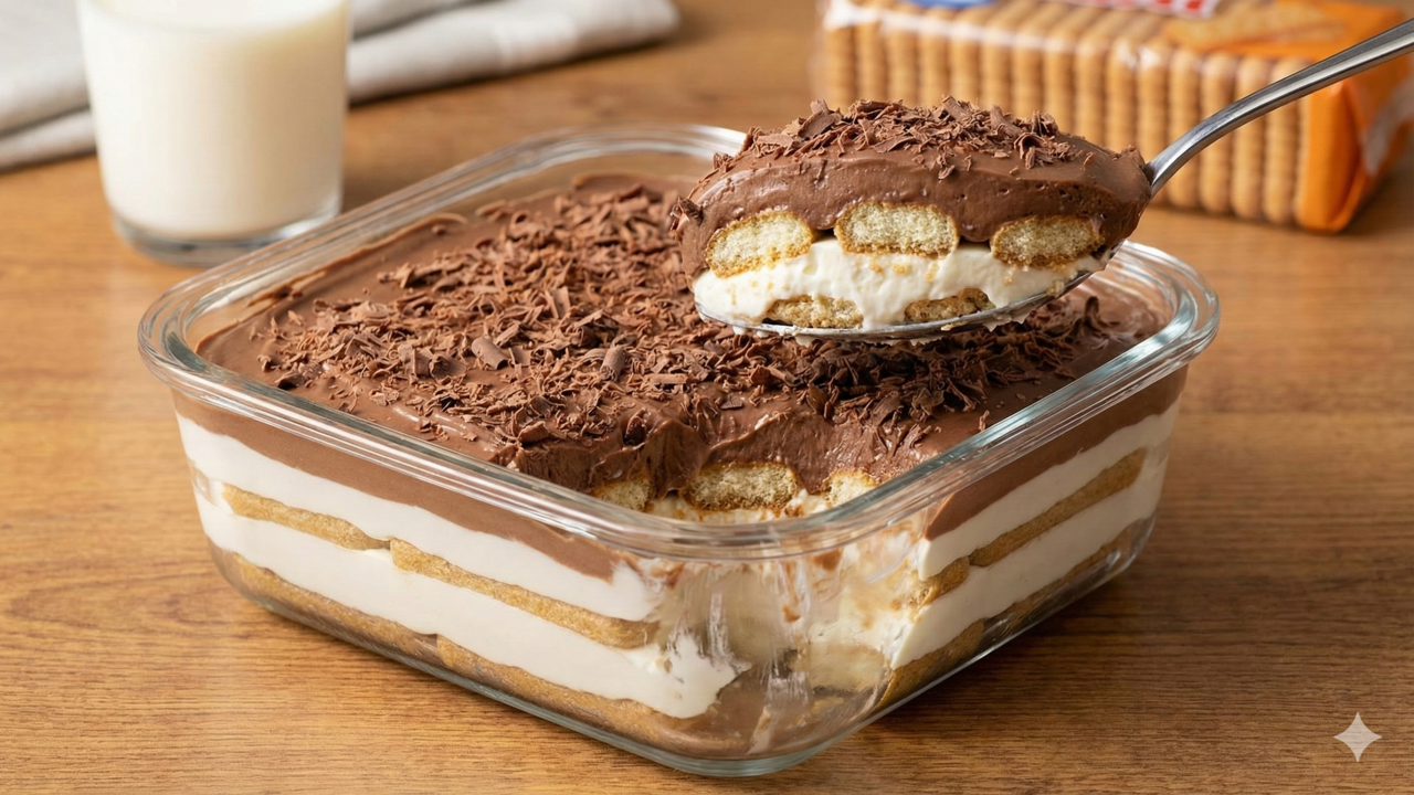 A proposta é transformar leite, leite condensado, ovos, amido de milho e leite em pó em um creme encorpado, que ganha textura firme depois de gelado. Tudo isso usando bolacha simples de pacote, como a tipo maisena, que entra na montagem já pronta, formando camadas macias sem trabalho extra.