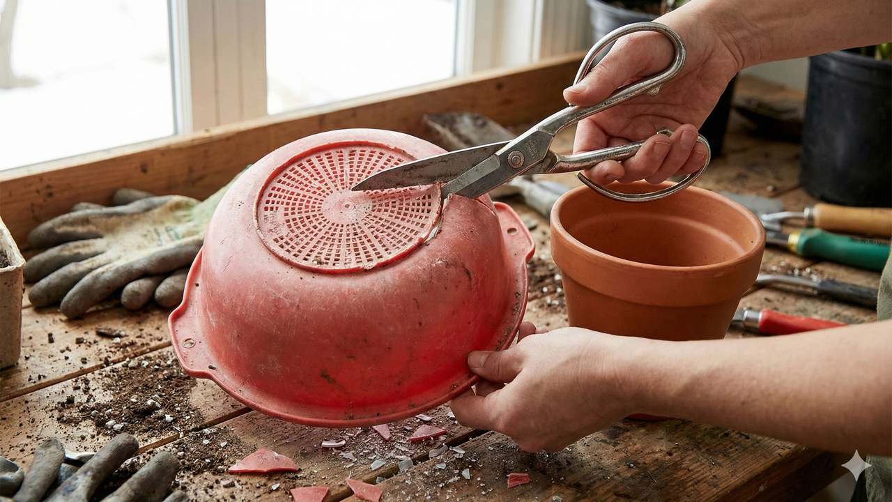 Como o reaproveitamento do escorredor de macarrão transforma o cuidado com plantas em atitude urgente