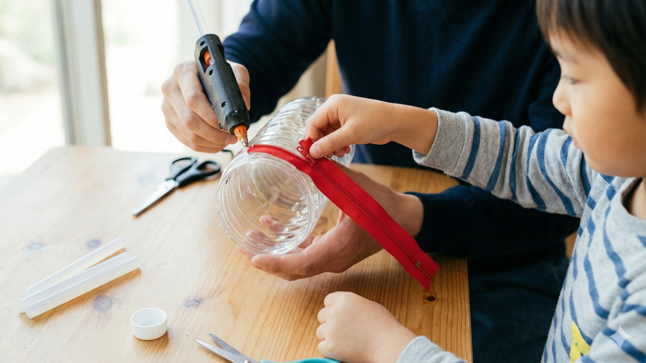 Entre as várias possibilidades de reciclagem criativa, o estojo escolar feito com uma garrafa PET e um zíper é um exemplo prático e rápido de reproduzir. O corpo da garrafa é adaptado para funcionar como compartimento rígido para lápis, canetas, marcadores, borrachas e outros materiais pequenos, gerando um estojo leve, lavável e durável.