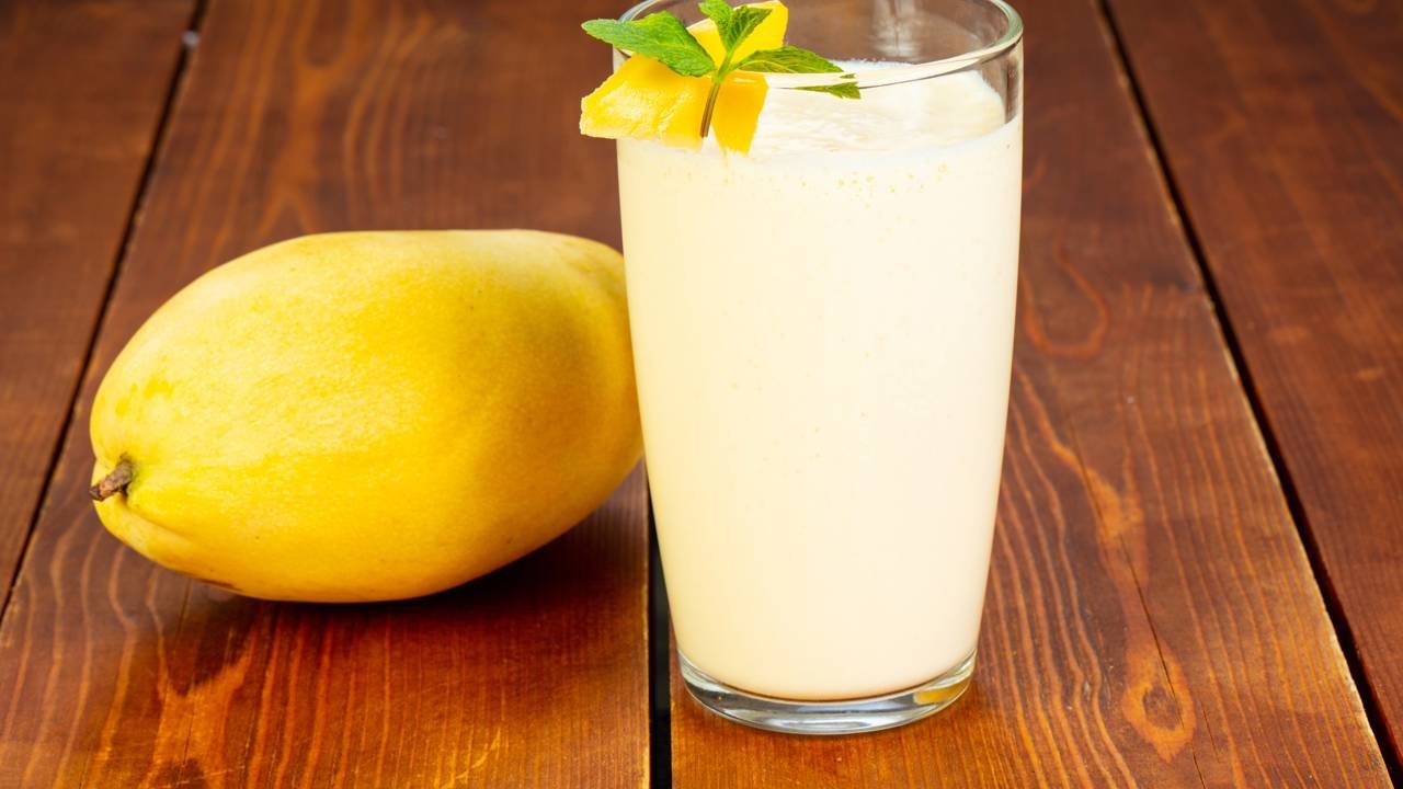 - Vitamina de manga com leite ou bebida vegetal, sem adição excessiva de açúcares;