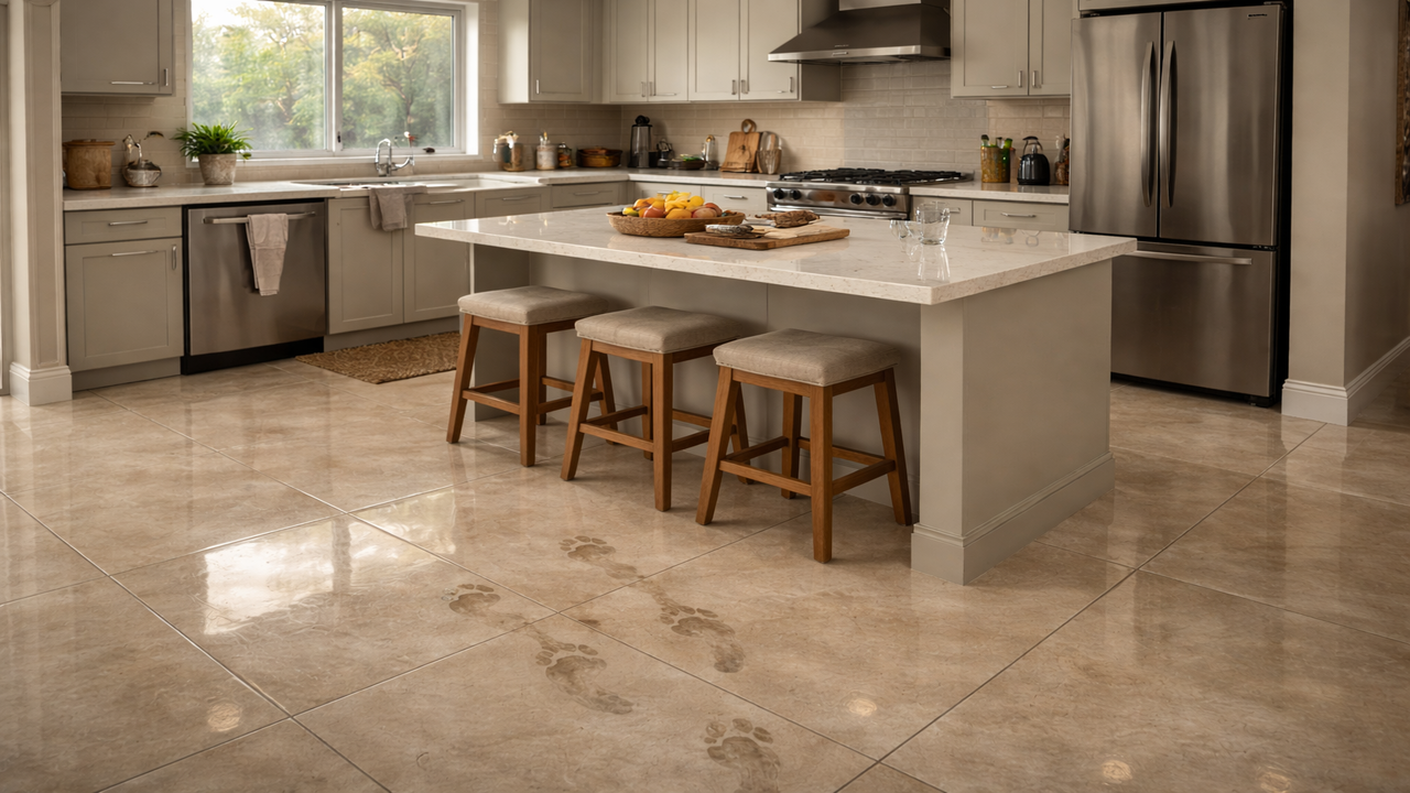 O acabamento espelhado evidencia sujeira, respingos e marcas de pés ou patas, causando a sensação de piso “sempre sujo”. A superfície lisa aumenta o risco de escorregões quando molhada, exigindo cuidado redobrado em cozinhas, banheiros e varandas, além de atenção a riscos finos e desgaste causado por limpeza inadequada.