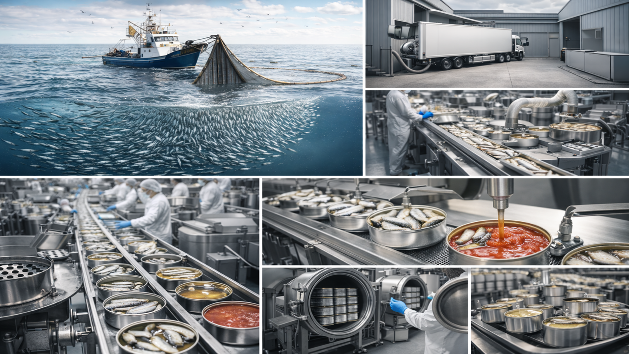 Da pesca ao envase, a sardinha em lata passa por etapas industriais que garantem segurança, sabor e longa durabilidade