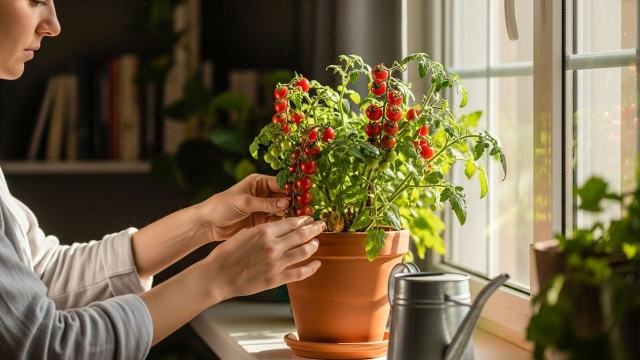 O tomate-cereja se adapta bem a vasos por ter raízes controláveis e ciclo rápido. Com tutoramento, seis horas de sol, rega equilibrada e poda correta, produz frutos doces, saudáveis e abundantes mesmo em apartamentos.