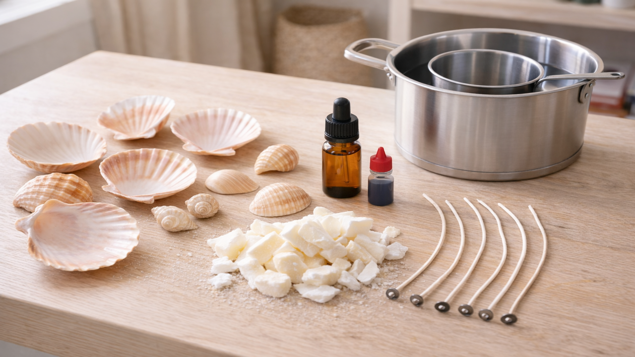 O processo de fabricação das velas em conchas segue uma sequência simples, feita em casa com poucos materiais, mas exige atenção para garantir segurança e bom acabamento. Antes de começar, reserve um espaço arejado, protegido contra respingos de cera quente e mantenha crianças e pets afastados durante o preparo.