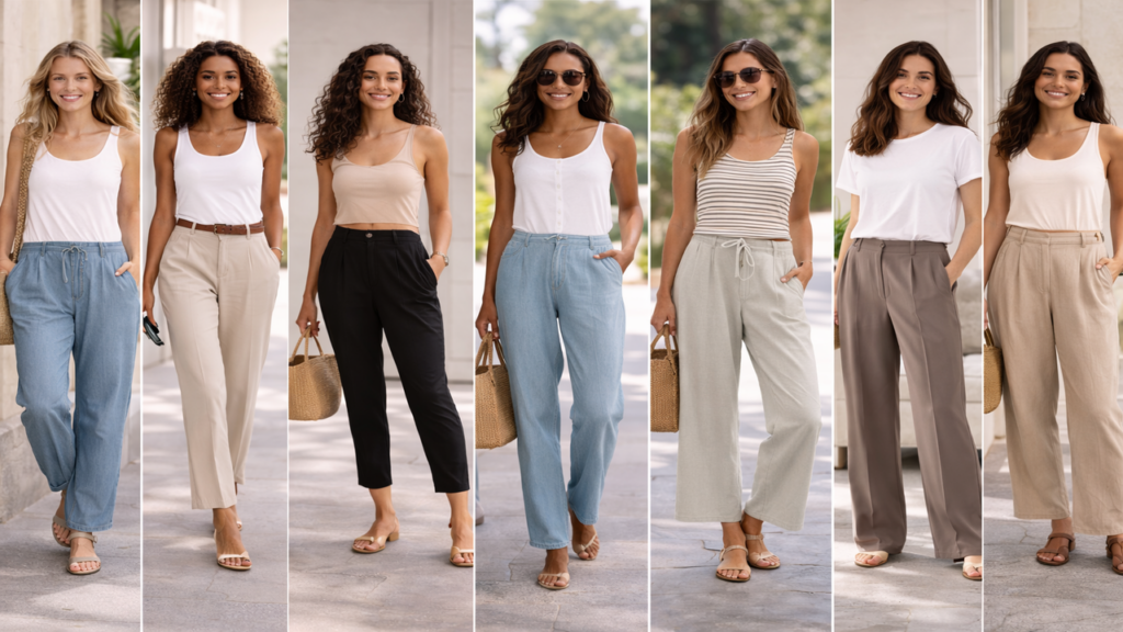As calças femininas para o verão 2025 e 2026 ganham cada vez mais espaço nos looks de dias quentes, principalmente entre mulheres que preferem cobrir as pernas, mas não querem abdicar do conforto. A combinação entre tecido leve, modelagem solta e comprimento adequado permite atravessar as altas temperaturas com praticidade, sem depender apenas de saias ou vestidos, enquanto o mercado de moda sinaliza essa preferência com lançamentos voltados especificamente para o clima quente.