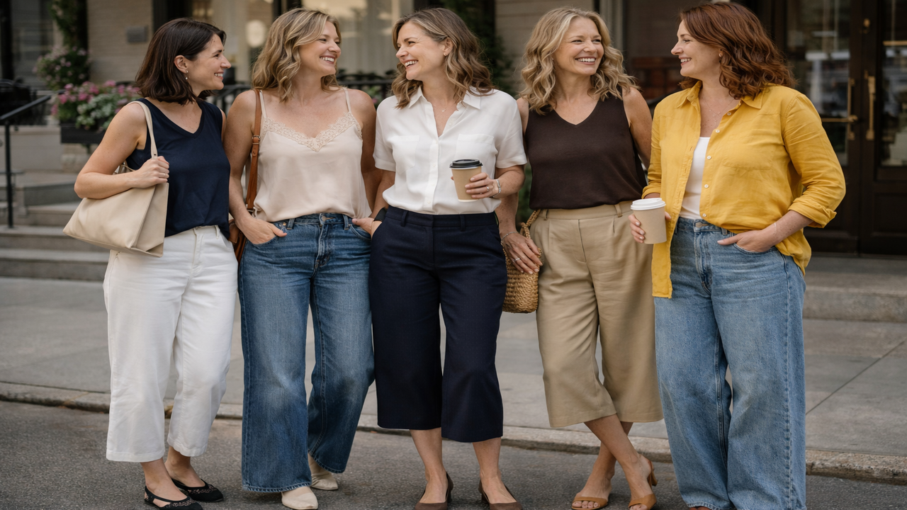- Calças fluidas: soltas, em tecidos leves, indicadas para quem prioriza conforto térmico.