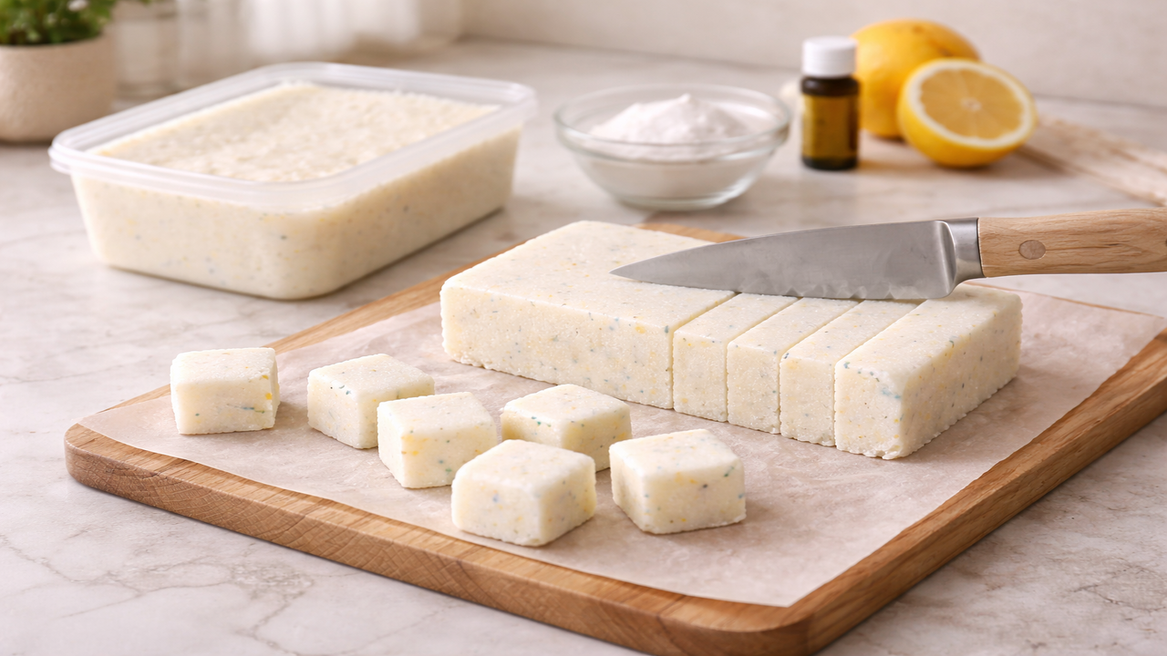 Também vale observar a intensidade da cor, da espuma e do perfume após alguns dias de uso, ajustando o tamanho dos cubos em preparos futuros se necessário. Em casas com crianças pequenas ou animais, o ideal é armazenar os blocos em potes bem fechados, em locais altos ou armários trancados, preservando o aroma e evitando qualquer risco de contato acidental.