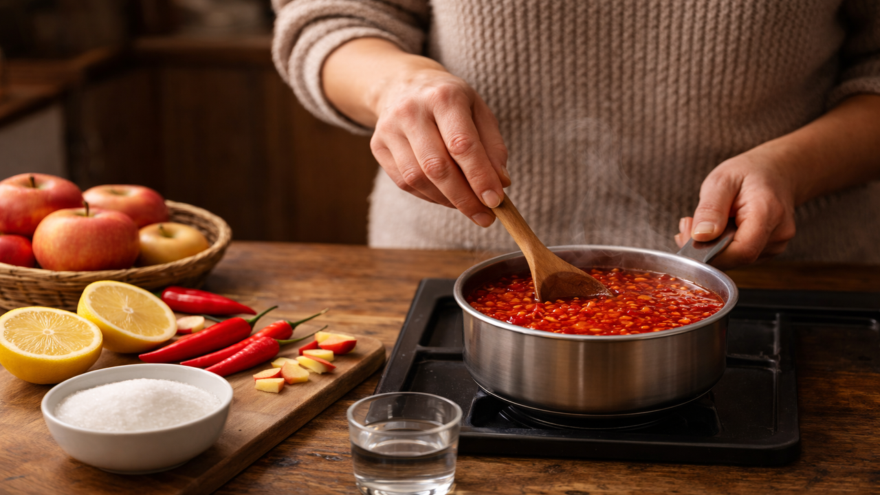 A maçã entra como base neutra, ajudando na consistência e na doçura, sem sobrepor o sabor da pimenta. A mesma receita pode ser ajustada para ficar mais suave ou mais intensa, dependendo do tipo de pimenta, da quantidade de açúcar e do grau de acidez escolhido.