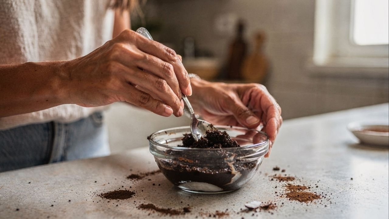 A esfoliação corporal com borra de café e óleo de coco remove células mortas, estimula a circulação e hidrata a pele. Usada corretamente, melhora textura, previne pelos encravados e reaproveita resíduos domésticos de forma sustentável.