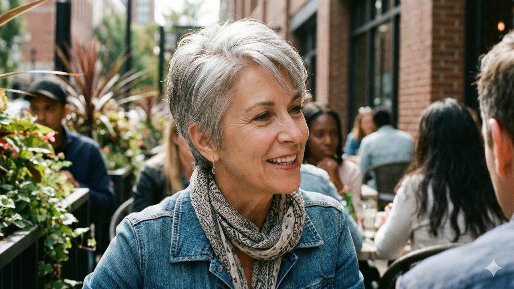O grey blending acompanha um movimento de envelhecer com mais coerência entre cabelo, pele e estilo, sem tentar voltar a uma década específica da vida. Transições suaves, cortes atualizados e brilho controlado comunicam cuidado constante, sem depender de retoques semanais ou mudanças drásticas.