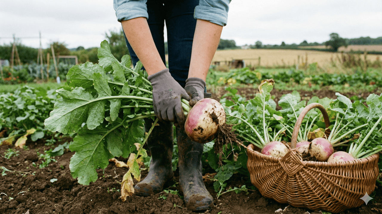 O nabo em canteiros domésticos exige solo fofo e rico em matéria orgânica para se desenvolver bem. Com sol direto e regas frequentes você colhe raízes tenras em até 60 dias aproveitando inclusive as folhas.