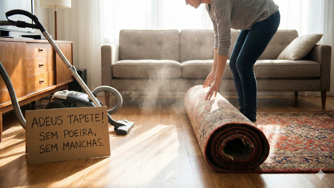 Abandonar o tapete de sala tem se tornado uma escolha comum em projetos residenciais que priorizam limpeza prática, bem-estar e ambientes mais saudáveis. Sem tecidos no chão, a poeira tem menos onde se acumular, a rotina de manutenção fica mais simples e o visual ganha leveza, desde que o piso seja escolhido com foco em praticidade e aconchego.