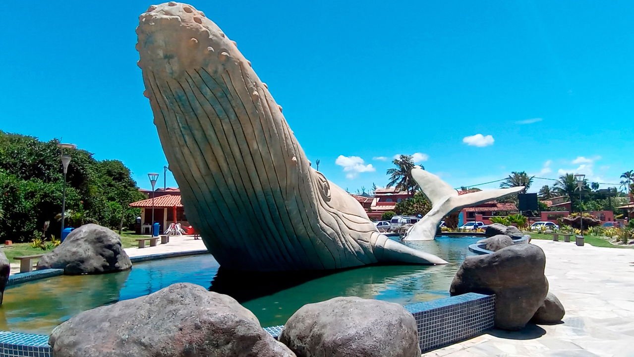 A Praça da Baleia ostenta uma escultura de bronze de 20 metros de uma jubarte, homenageando a rica fauna marinha local. O monumento simboliza a conexão do município com o mar, que vai além do turismo e alcança a indústria do petróleo.