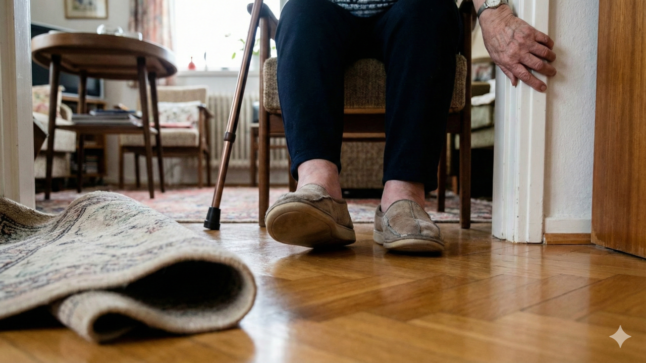 O famoso chinelo de dedo exige que os dedos façam um movimento de “garra” o tempo todo para o calçado não sair do pé. Esse esforço constante altera o jeito de caminhar, deixando o passo mais curto e arrastado, o que facilita tropeços em tapetes ou degraus baixos dentro de casa.