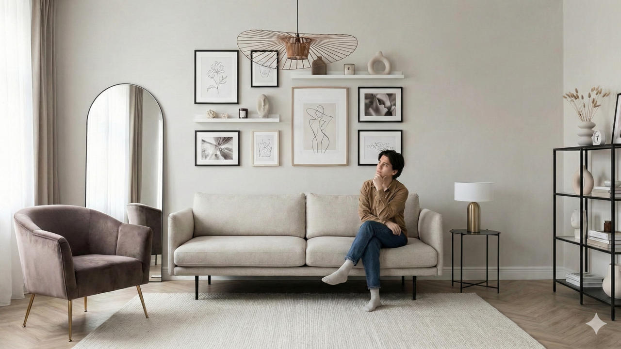 | Sofá gigante em sala pequena | Ideia de conforto associada ao tamanho do móvel. | Compromete circulação, deixa o ambiente pesado e visualmente sufocante. | Medir o espaço, escolher modelos mais compactos, com braços finos e pés aparentes. |