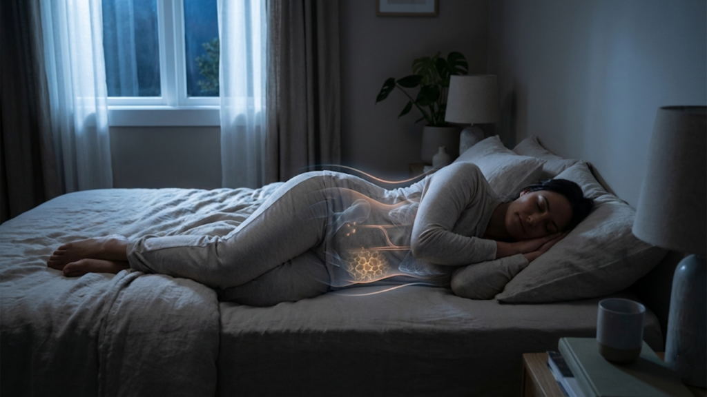 Durante o sono profundo, o organismo libera o hormônio do crescimento, que é um potente aliado na queima de gordura e recuperação dos tecidos. Se você faz uma refeição pesada muito tarde, o corpo desvia a energia para a digestão, atrapalhando esse processo.