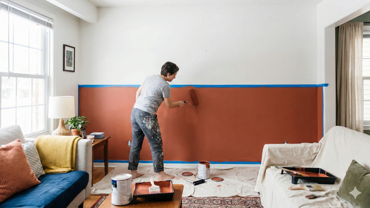 Além dos verdes e cinzas, 2026 traz de volta as cores quentes para paredes, como terracota, marrom suave e arena quente. A terracota cria clima acolhedor e marcante em salas, halls e escritórios, enquanto tons terrosos suaves evitam a monotonia típica do branco.