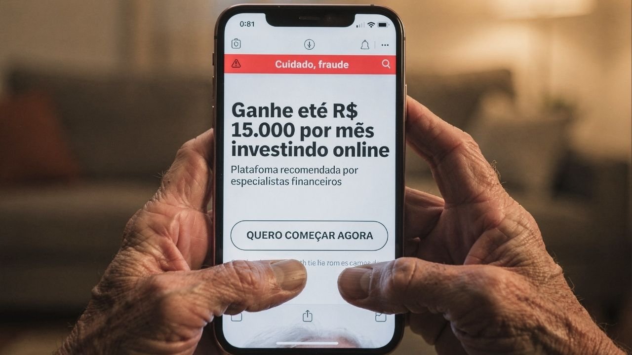Um site de investimento falso está circulando nas redes sociais com promessa de ganhos de até R$ 15 mil por mês, especialmente direcionado a aposentados. O golpe usa imagens de jornalistas famosos para simular credibilidade e induzir vítimas a realizar depósitos.