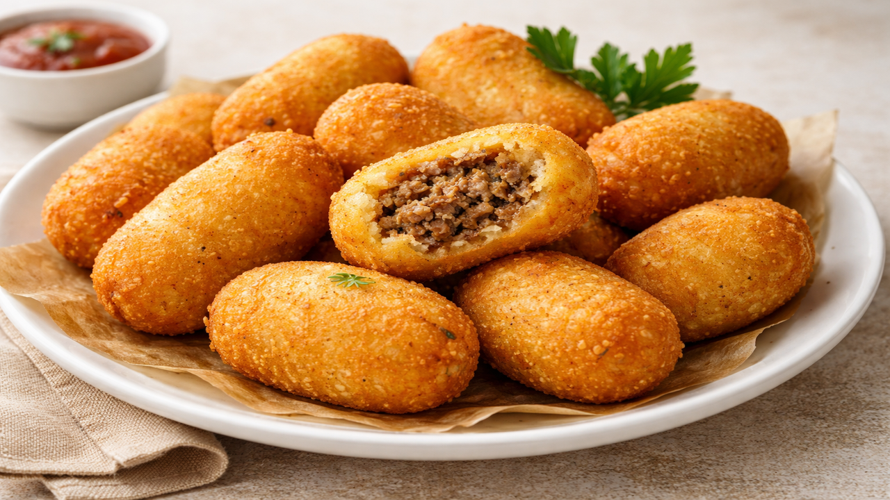 Bolinho de aipim com carne virou aquele tipo de salgado que entra fácil na lista de favoritos: tem casquinha crocante, recheio bem temperado, massa feita de mandioca e ainda é opção prática para festas, lanches rápidos e para quem quer fugir do glúten sem abrir mão de sabor e textura de comida caseira.