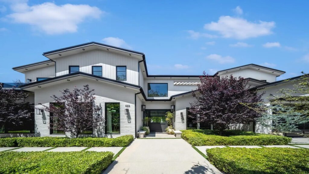 Projetada pela Gispan Design com interiores assinados por Anthony Barsoumian, a casa principal possui cinco quartos e sete banheiros, complementada por uma casa de hóspedes independente (com quarto e banheiro próprios). O design é moderno, elegante e minimalista. As áreas de convivência fluem perfeitamente entre os ambientes internos e externos, destacando-se uma cozinha gourmet com ilha dupla e eletrodomésticos Miele, além de uma cozinha auxiliar equipada com fogão Wolf.