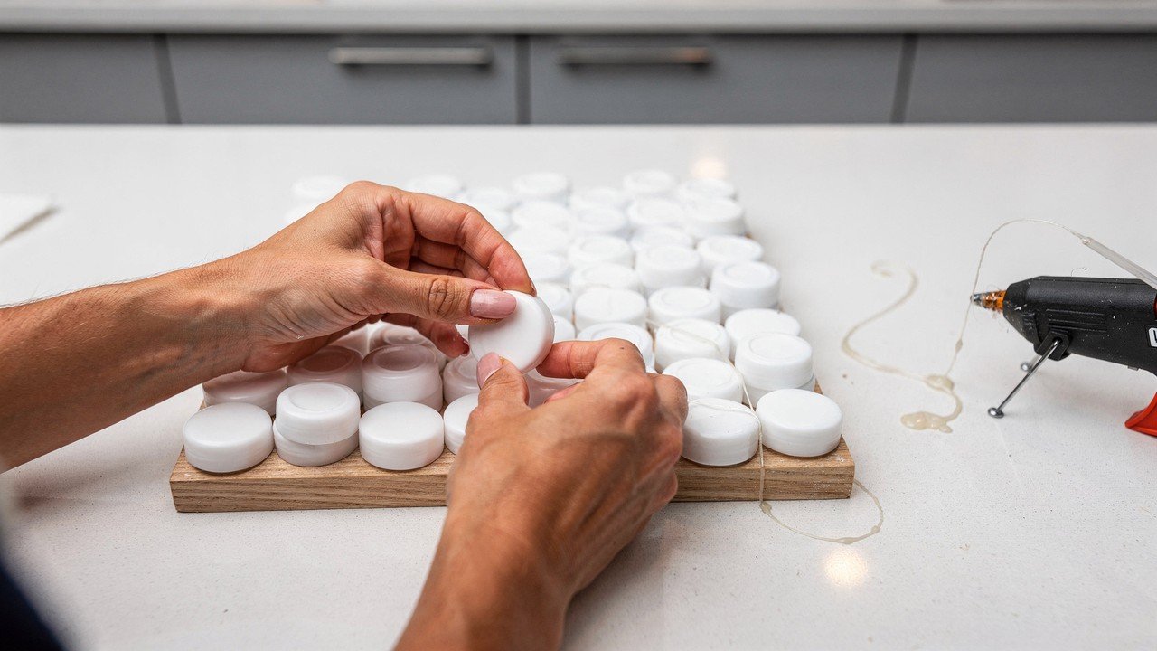 As tampas de garrafas de leite que iriam para o lixo podem ganhar nova função na cozinha. Por serem mais espessas e rígidas, resistem ao calor por curtos períodos e, com limpeza adequada e colagem correta, formam um suporte térmico estável.