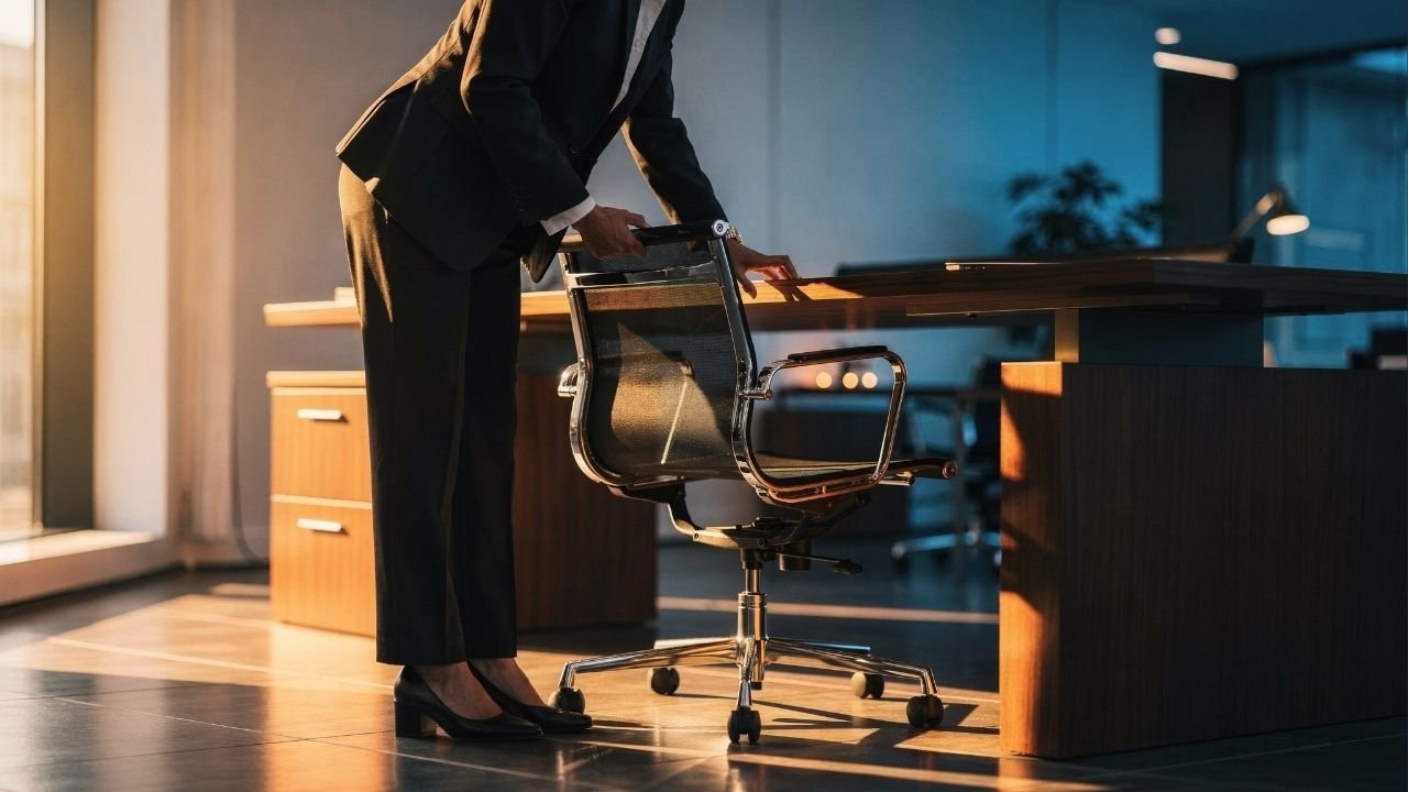Ajustar a cadeira exige um microintervalo entre levantar e sair. Para a psicologia, essa pequena pausa indica regulação comportamental e menor tendência a agir de forma automática ou impulsiva no cotidiano.