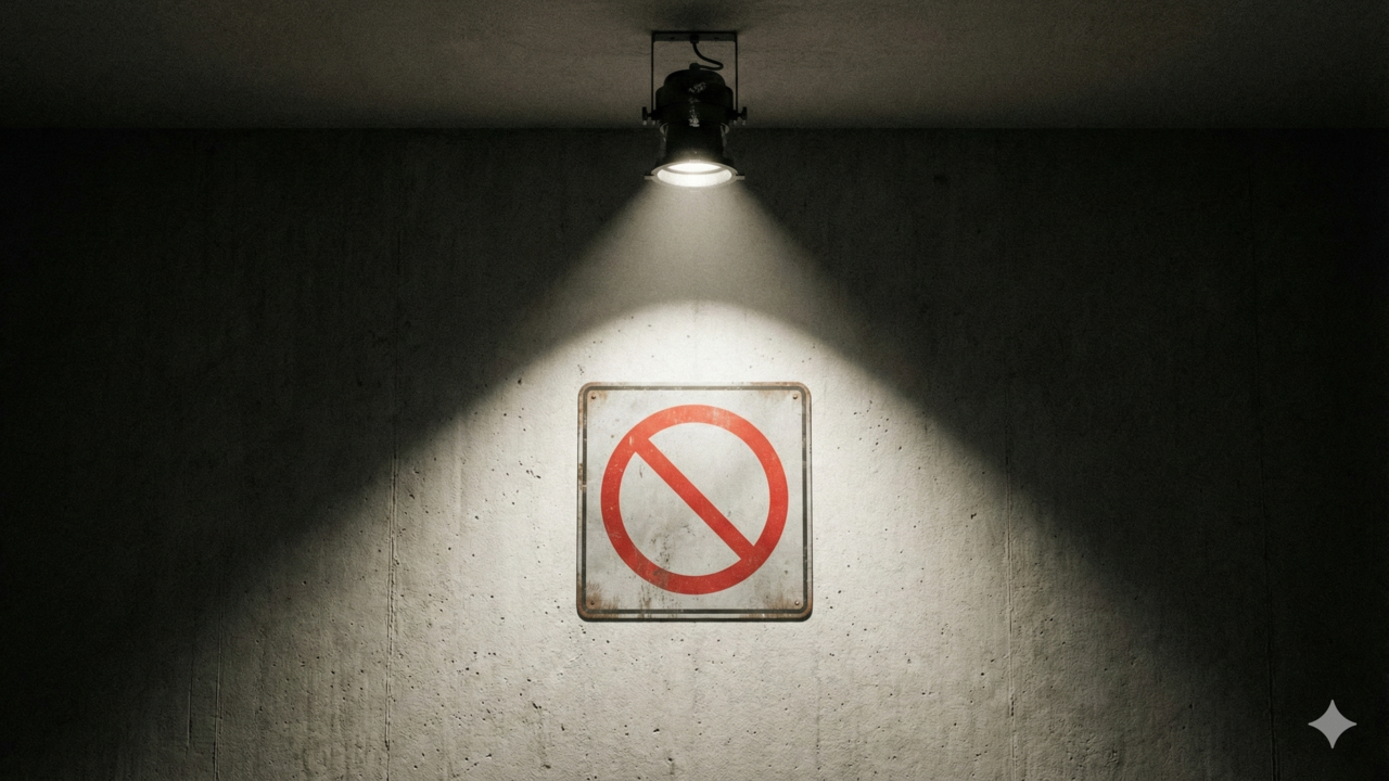 imagem de uma iluminação focal com spot e um símbolo de proibido