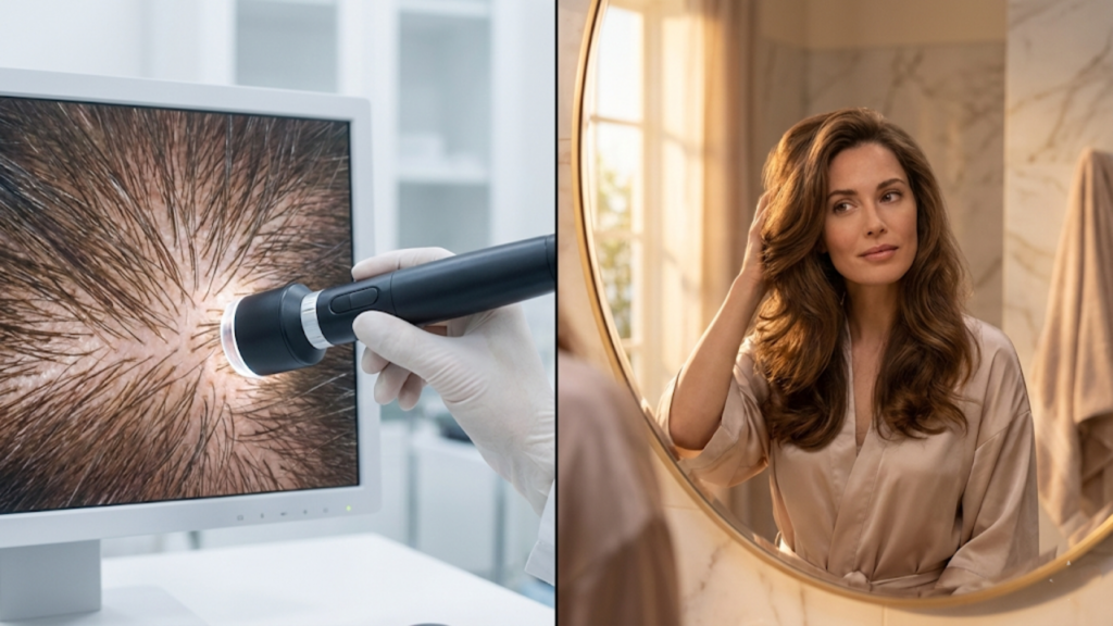 O diagnóstico correto envolve exames de sangue detalhados e, em situações específicas, uma biópsia do couro cabeludo. Somente um profissional consegue diferenciar uma queda sazonal de uma condição genética que exige medicamentos de uso contínuo para manter a densidade dos fios e evitar falhas permanentes.