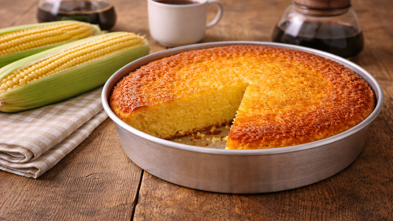 Na prática, é uma receita que une rusticidade e praticidade, já que a base é feita no liquidificador. O resultado é um bolo úmido por dentro, dourado por fora e com aroma forte de milho recém-batido, ideal para acompanhar café preto, chá ou cafezinho coado na hora.