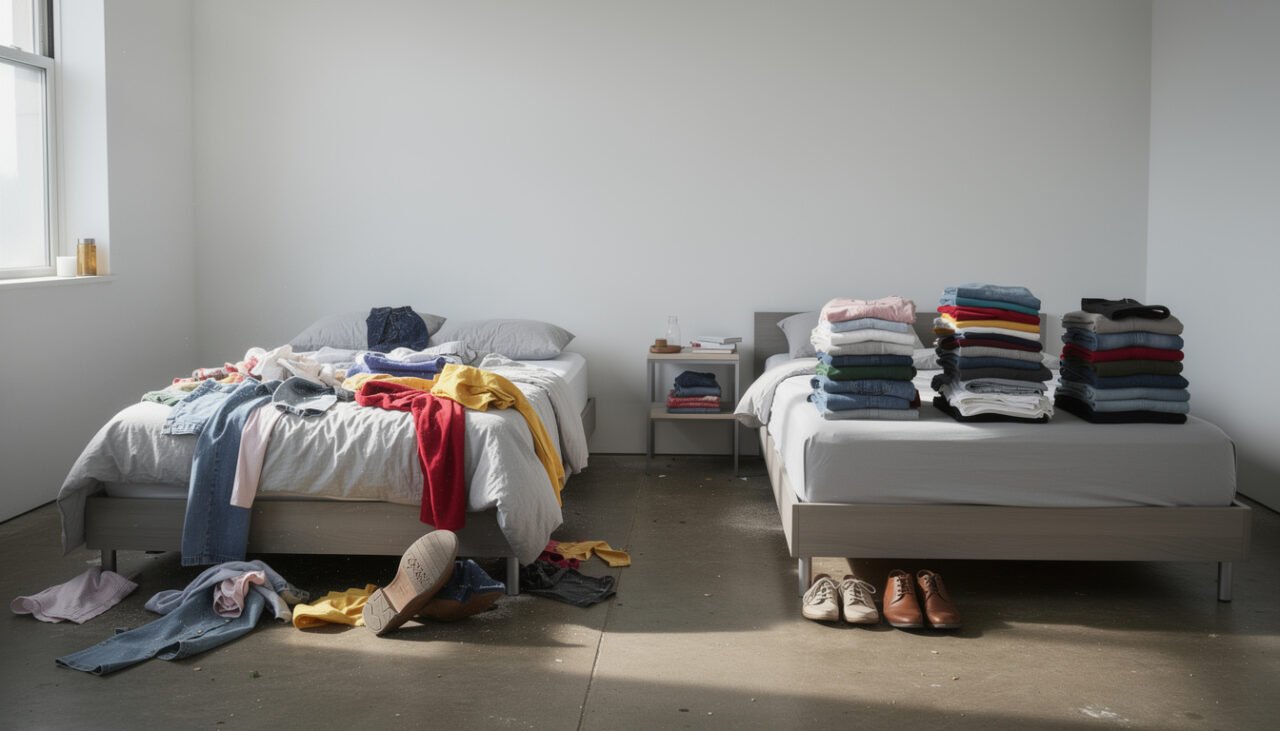 Guardar roupas espalhadas apenas quando alguém anuncia uma visita é um comportamento que a psicologia comportamental explica com clareza. Esse hábito revela padrões emocionais ligados à motivação extrínseca, à autoimagem e à forma como processamos o julgamento social. Compreender o que está por trás desse gesto aparentemente simples pode transformar a maneira como você se relaciona consigo mesmo e com o seu espaço.