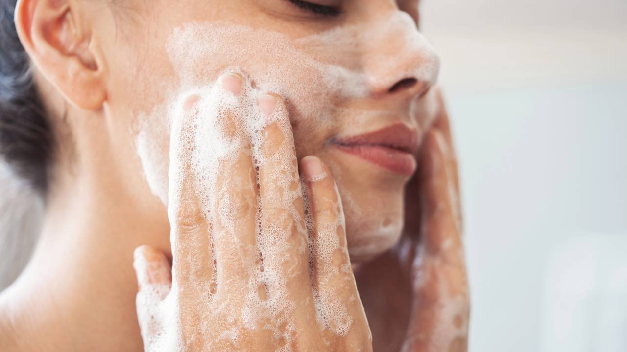 1. Limpeza (1 a 2 minutos): usar um sabonete facial em gel ou espuma, específico para pele oleosa ou mista. Fazer movimentos suaves com as mãos, sem esfregar demais, ajuda a evitar irritação e mantém a barreira da pele mais saudável.