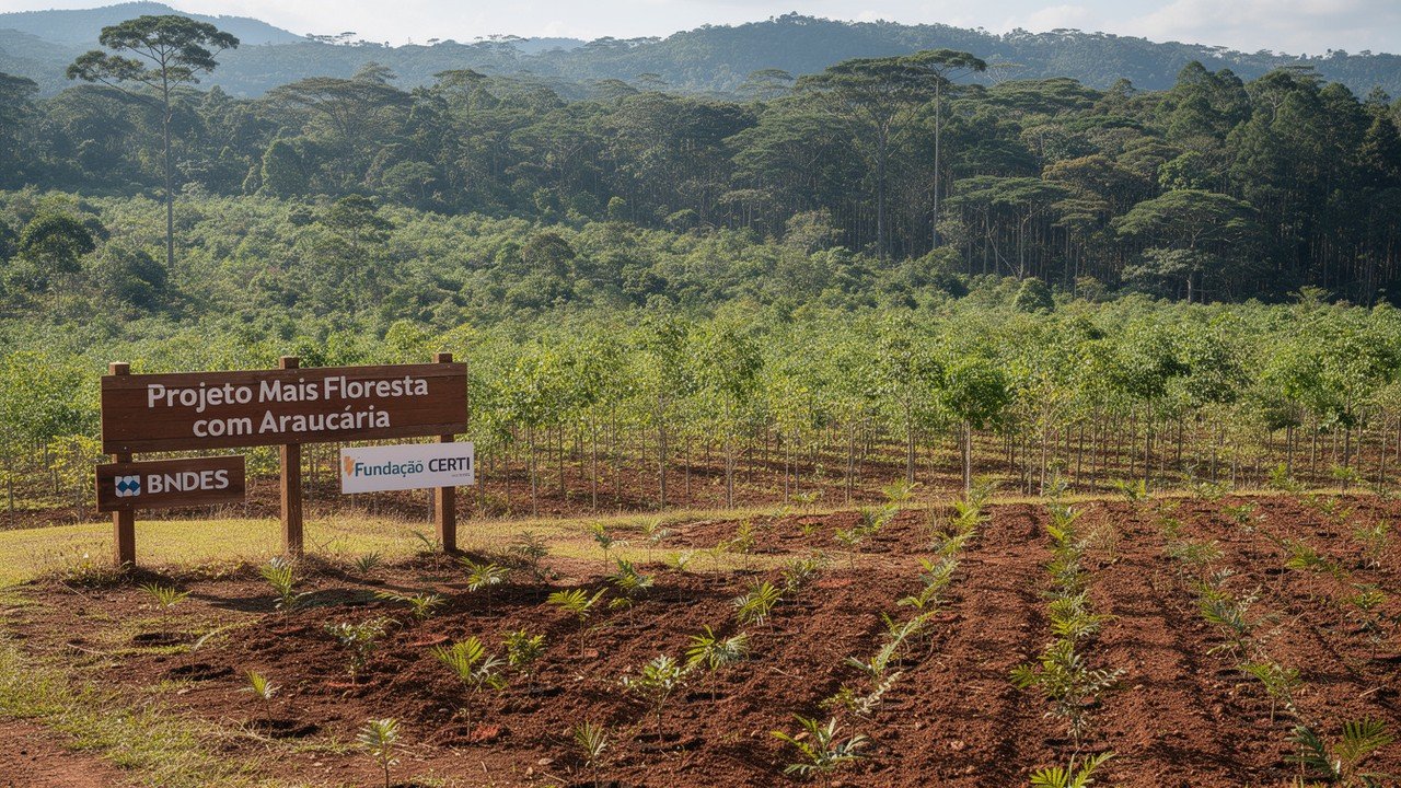 A iniciativa é financiada pelo BNDES e executada pela Fundação CERTI, com foco em reconectar fragmentos florestais e recuperar serviços ambientais essenciais, como regulação climática, conservação do solo e disponibilidade de água.