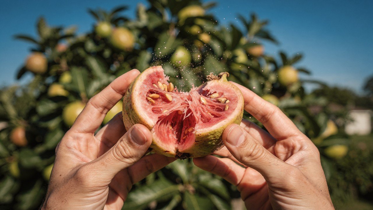 Além da concentração elevada, colher o fruto no quintal permite consumir a vitamina C no pico de maturação. Diferente de frutas colhidas verdes para transporte, a goiaba caseira preserva melhor sabor e nutrientes.