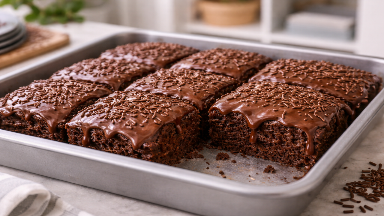 Um bolo de chocolate pronto em poucos minutos, macio por dentro e coberto com brigadeiro cremoso, tornou-se a receita queridinha de quem quer sobremesa rápida, prática e cheia de sabor, misturando tudo no liquidificador, levando ao forno e finalizando com uma calda generosa que se espalha pela massa ainda quente.