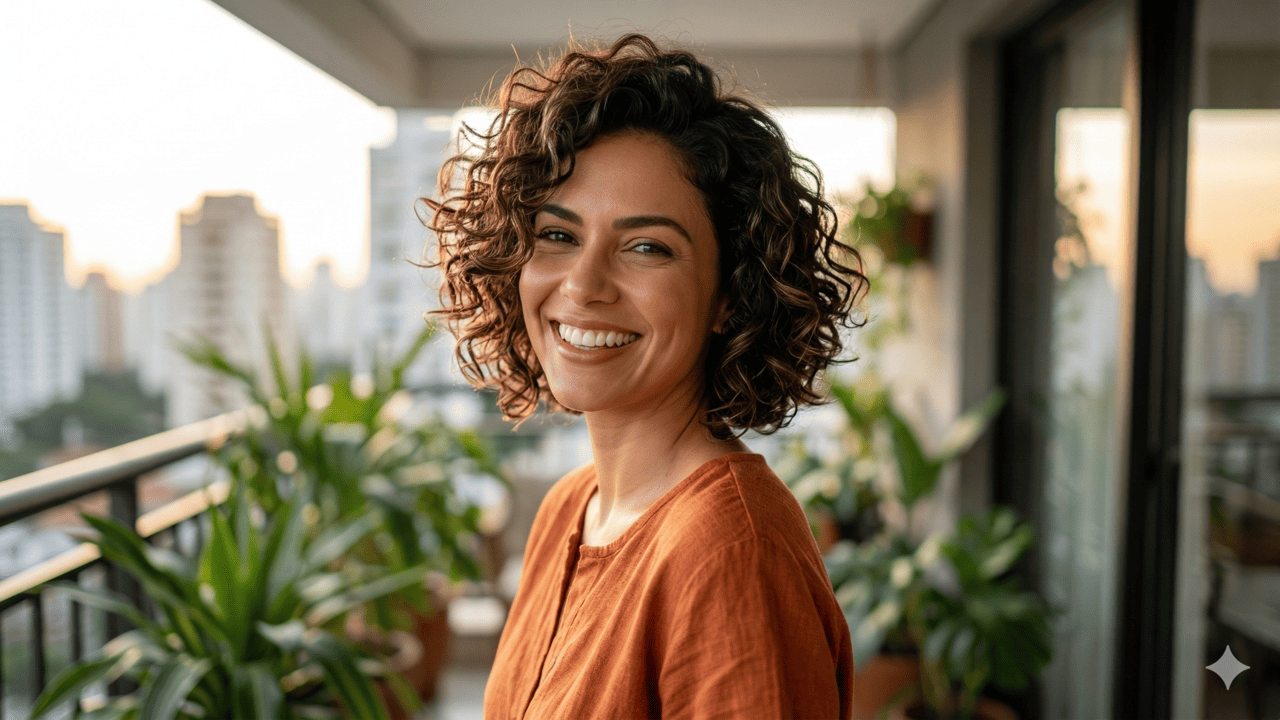 Para mulheres com mais de 50 anos, os curtos em camadas suaves trazem sensação de densidade a fios que costumam afinar com o tempo. Comprimentos na altura do queixo ou um pouco acima dos ombros são muito escolhidos, assim como franjas leves, que ajudam a integrar fios brancos ao visual. Com um bom corte, hidratações regulares e um cronograma simples, o cabelo curto cacheado se mantém expressivo, elegante e fácil de cuidar em qualquer idade.