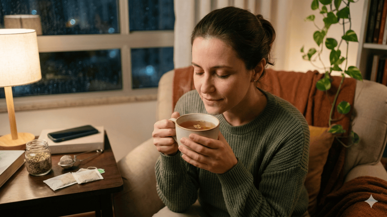 Além desse efeito suave na digestão, o chá costuma marcar um momento de pausa no fim do dia, criando um clima mais tranquilo e relaxante. O simples ato de preparar a bebida, esperar a infusão e tomar ainda morna ajuda a desacelerar, especialmente quando combinado com um jantar leve e menos telas à noite.