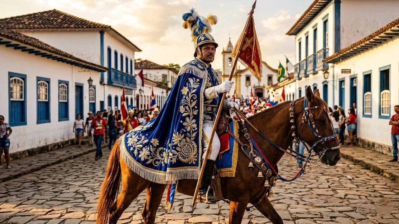 Desde 1826, dois exércitos de 12 cavaleiros cada reencenam a guerra entre cristãos e mouros em pleno Goiás. As Cavalhadas de Pirenópolis duram três dias, com armaduras bordadas à mão, lanças de madeira e cavalos ornamentados. O espetáculo faz parte da Festa do Divino Espírito Santo, registrada como Patrimônio Cultural Imaterial pelo Instituto do Patrimônio Histórico e Artístico Nacional (IPHAN) em 2010. O portal de turismo da prefeitura detalha toda a programação anual.